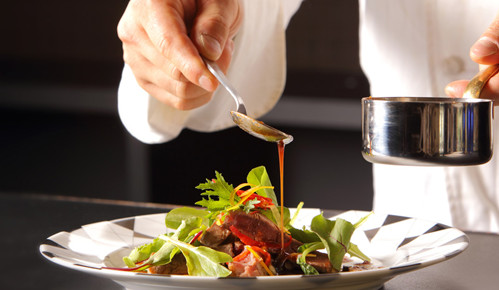 シェフのワゴンサービス付き、ゲストの五感を刺激するライブ感溢れるコース