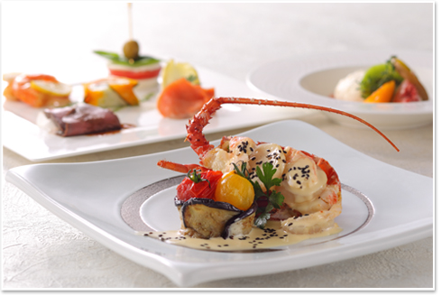 平砂浦ビーチホテルでは、最高のお料理をお二人の大切なゲストに提供するために、各ホテルで腕を振るう、日本料理の調理長とフレンチのチーフシェフが披露宴当日、同じ厨房に結集して、一皿一皿心を込めて丁寧に料理を仕上げていきます。目にも舌にも美味しいお料理であることはもちろん、お二人の「ありがとう」の想いも包みます。