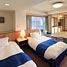 平砂浦海岸を望むオーシャンビューのゲストルームはツインベッドと8畳のタタミを配した40m2のゆとりある広さです。