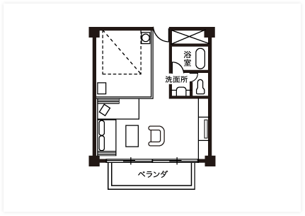 | 面積 | 40m2(ダブルベッド+リビング) |
